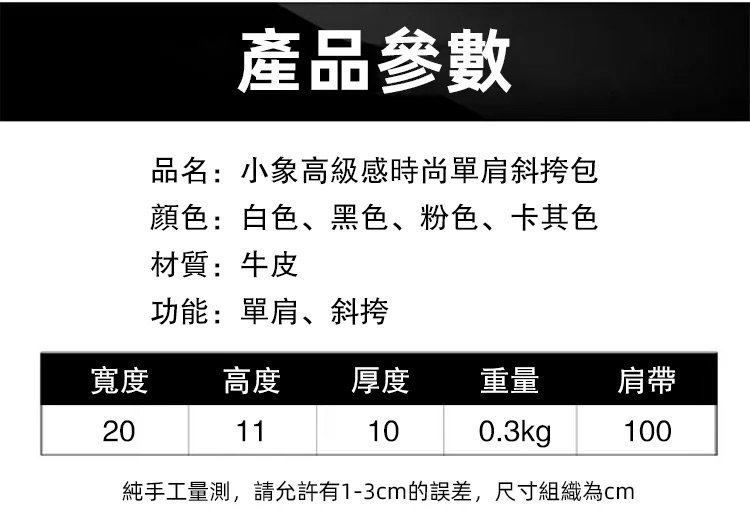 7分鐘前小象高級感時尚單肩斜挎包 - 一入组NT$799
