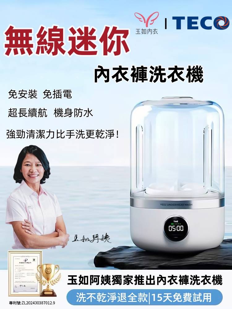 20分鐘前玉如阿姨獨家推出TECO迷你洗衣機,一鍵啟動解放雙手含銀離子持久抑菌,小巧機身功能齊全整機防水防潮防濕 - 內衣內褲分開洗 限時特惠 二入組NT$1990
